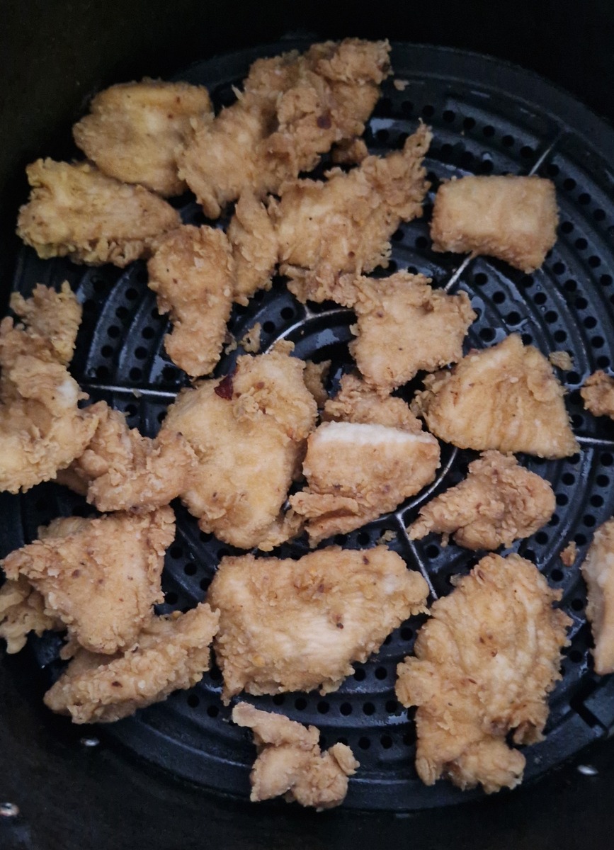 Wahrscheinlich macht er einfach selber Hähnchenstreifen KFC Style.